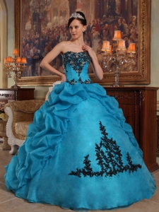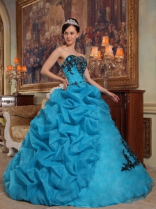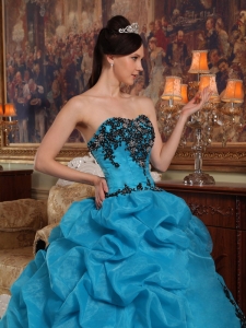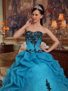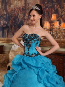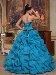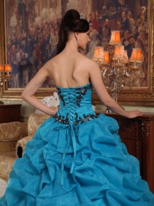 Popular Teal Quinceanera Dress Sweetheart Organza Appliques Ball Gown