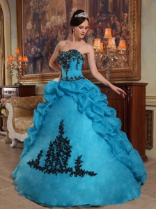 Discount Blue Quinceanera Dress Strapless Taffeta and Organza Beading and Pick-ups Ball Gown