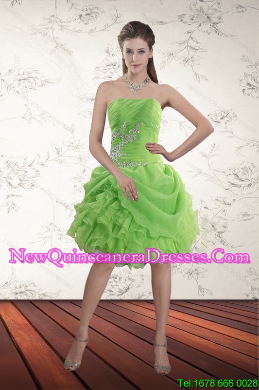 Brand New Spring Green Strapless Dama Dresses with Ruffles and Beading