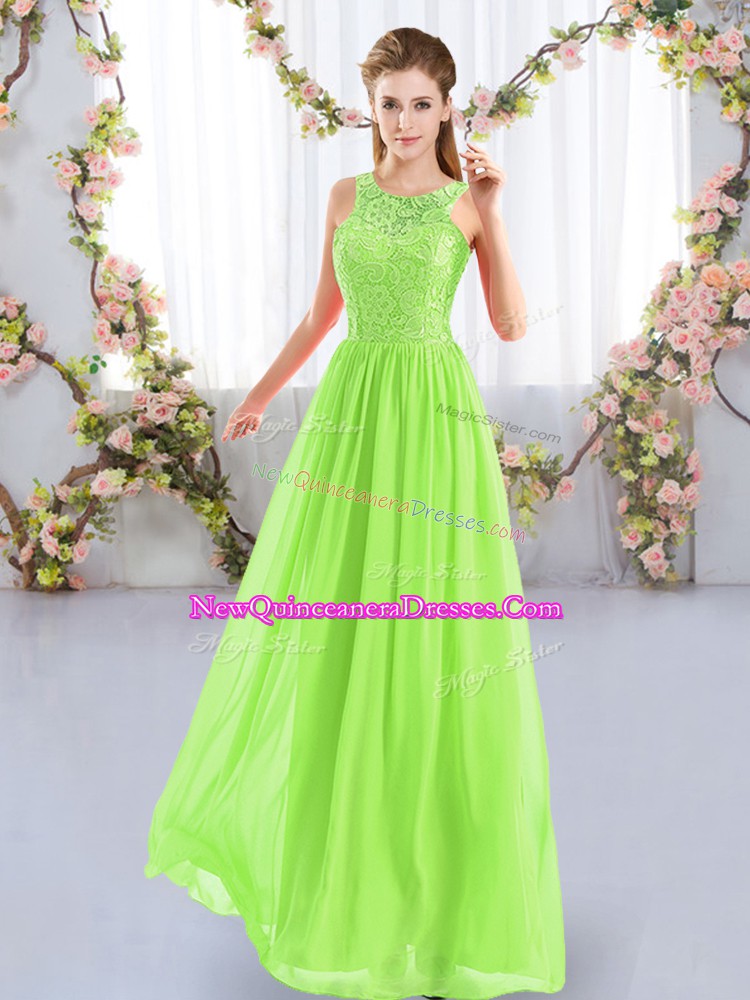 Captivating Scoop Sleeveless Damas Dress Floor Length Lace Yellow Green Chiffon