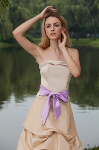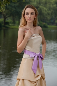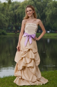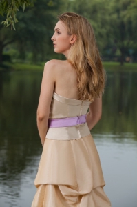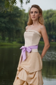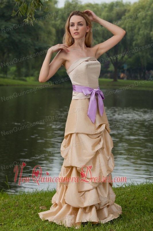 Champagne Column Strapless Floor-length Taffeta Sash Dama dresses