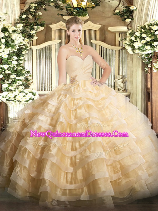 Champagne Sweetheart Neckline Beading and Ruffled Layers 15th Birthday Dress Sleeveless Lace Up