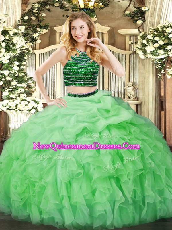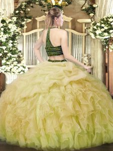 Charming Organza Sleeveless Floor Length Sweet 16 Dress and Beading and Ruffles