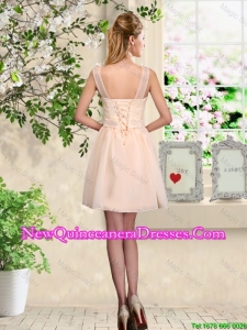 Cheap A Line Scoop Champagne Dama Dresses with Appliques