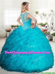Cheap Beaded and Ruffled Turquoise Quinceanera Dress in Tulle