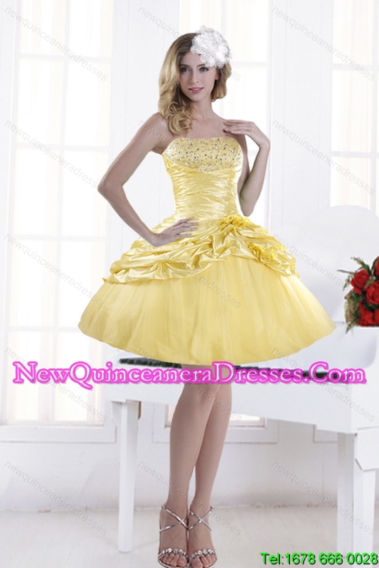 Cheap Beading Strapless 2015 Dama Dresses with Pick Ups
