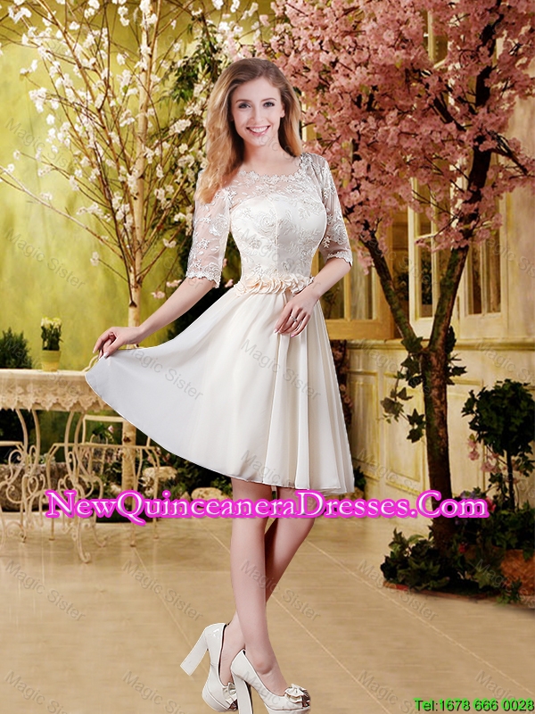 Cheap Champagne 2016 Dama Dresses with Lace and Belt