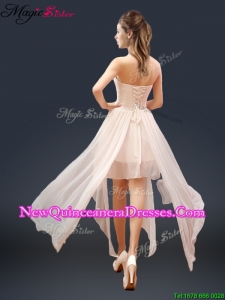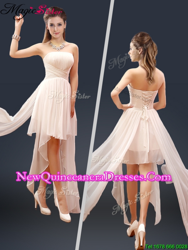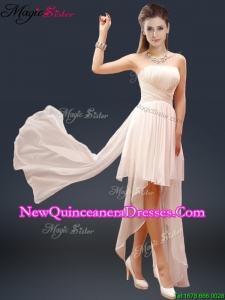 Cheap Champagne Asymmetrical Dama Dresses with Ruching