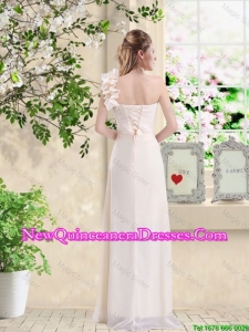 Cheap One Shoulder Hand Made Flowers Damas Dresses in Champagne