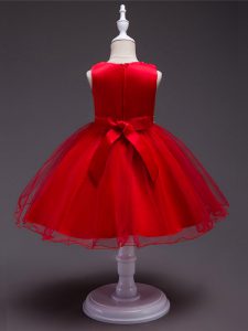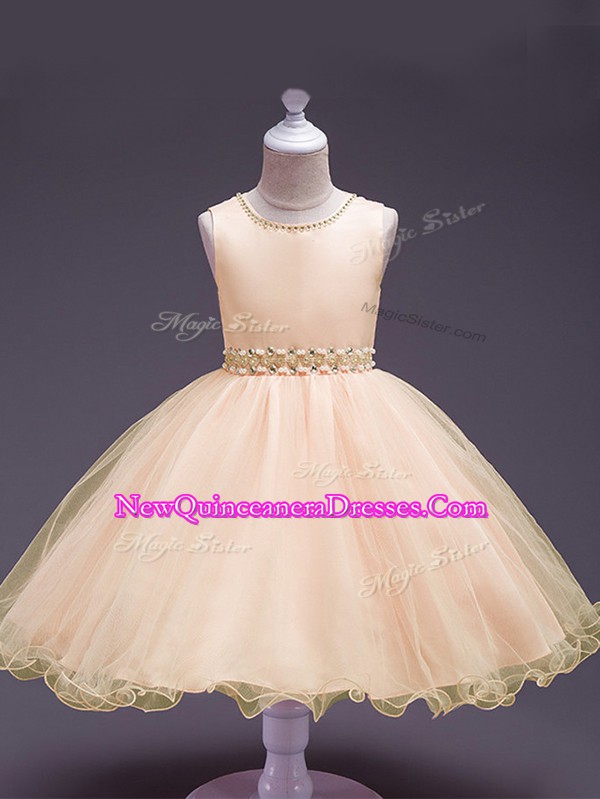 Cheap Peach Sleeveless Beading Knee Length Little Girls Pageant Gowns