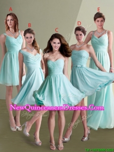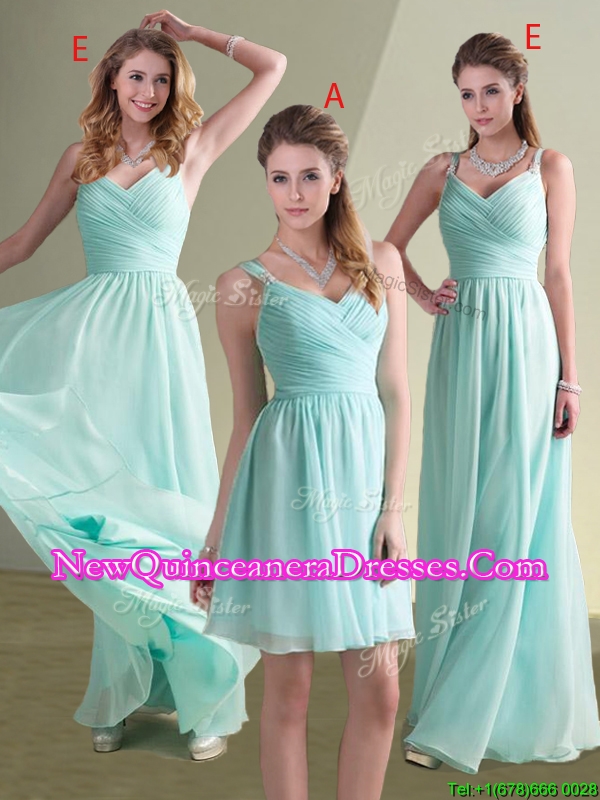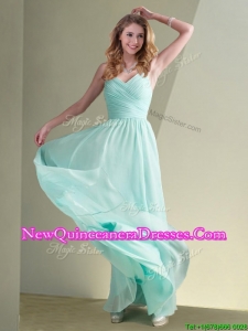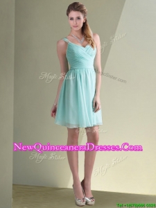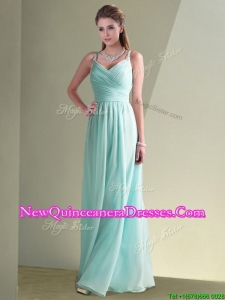 Cheap Straps Beaded and Ruched Aqua Blue Dama Dress in Chiffon