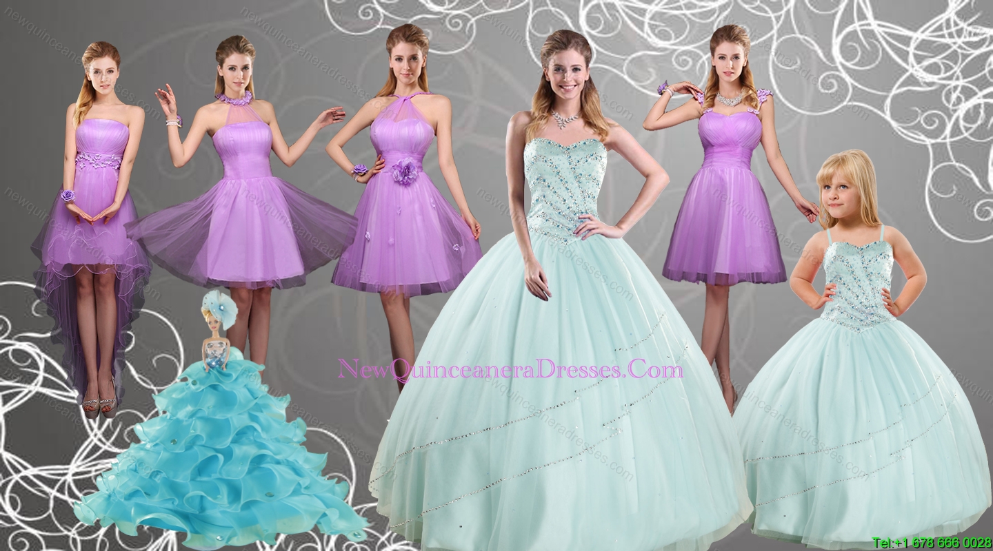 Cheap Sweetheart Beading Quinceanera Dress and Lilac Short Prom Dresses and Apple Green Spaghetti Straps Beading Pageant Dresses for Little Girl