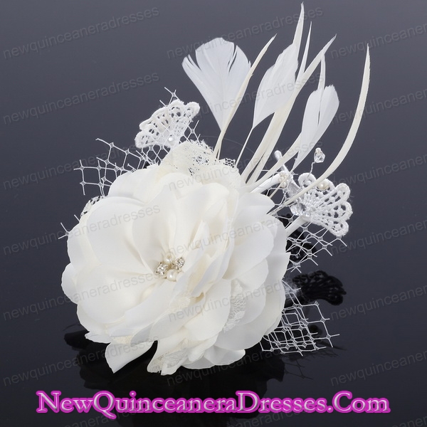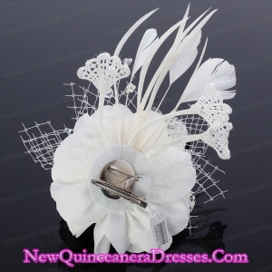 Feather and Tulle Imitation Pearls Feather Flower Hairpin for Outdoor