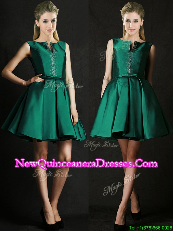 Classical A Line Green Short Dama Dress with Beading and Belt