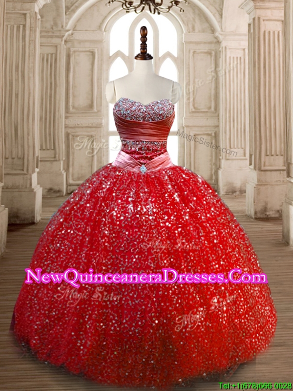 Classical Ball Gown Red Sweet 16 Dress with Beading and Sequins