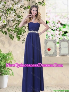 navy blue sleeveless party dama dresses with floor length,