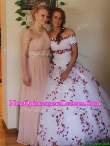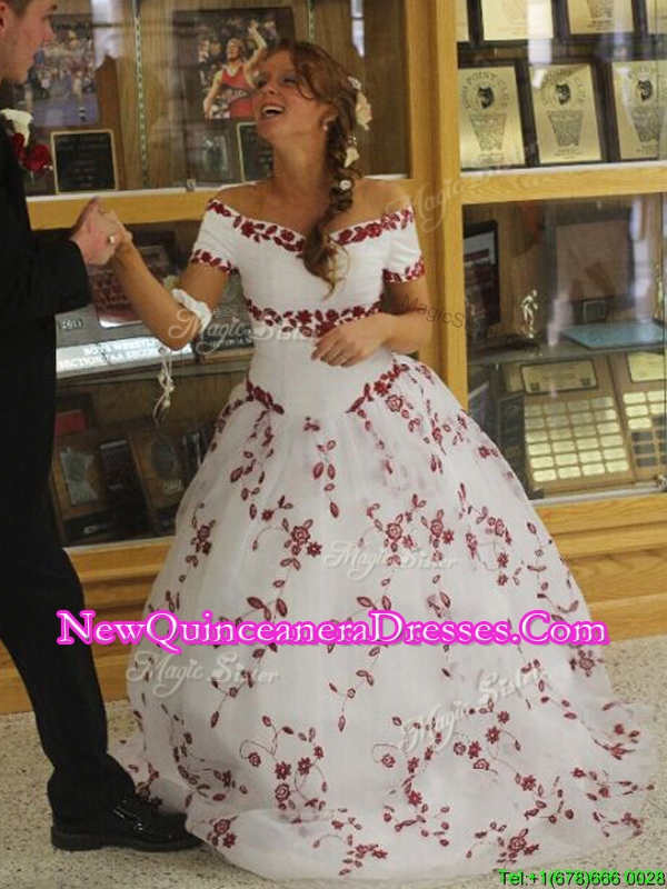 Classical Off the Shoulder White and Red Quinceanera Dress with Embroidery