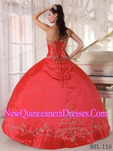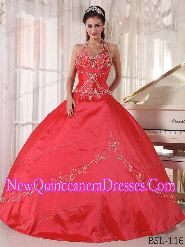 Classical Red Ball Gown Halter Top Taffeta Appliques Quinceanera Dress