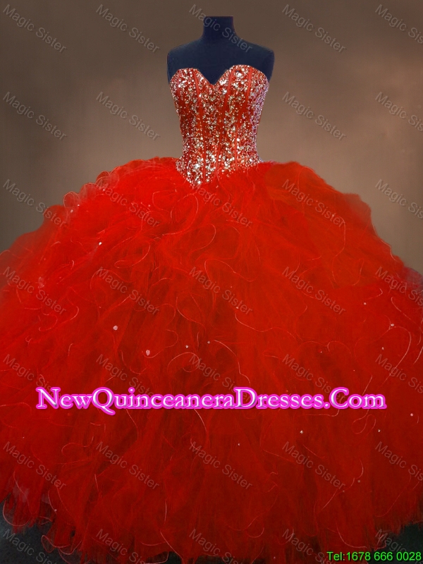 Classical Red Sweetheart Quinceanera Gowns with Ruffles and Beading