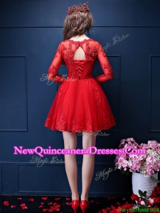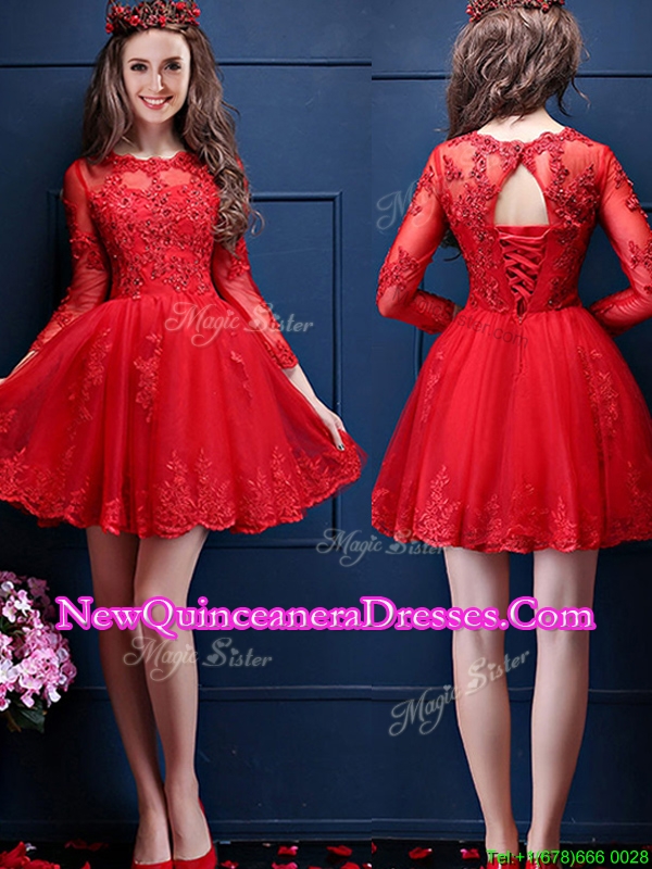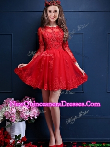 Classical Scoop Three Fourth Length Sleeves Short Dama Dress with Beading and Lace