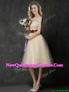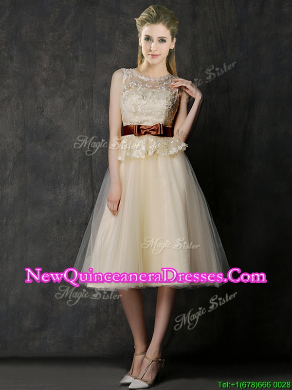 , Classical See Through Scoop Damas Dress with Bowknot and Lace