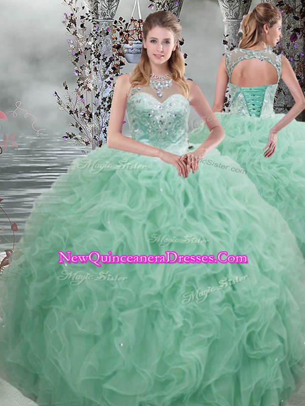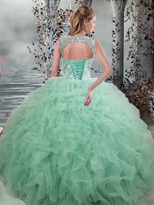Classical Sleeveless Floor Length Beading and Ruffles Lace Up 15 Quinceanera Dress with Apple Green