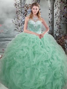 Beauteous Green Lace Up Sweetheart Beading and Ruffles 15 Quinceanera Dress Organza Sleeveless