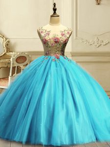 Super Tulle Sleeveless Floor Length Quinceanera Gown and Appliques
