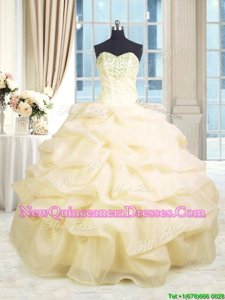 Clearance Beading and Ruffles Quinceanera Dresses Champagne Lace Up Sleeveless Floor Length