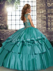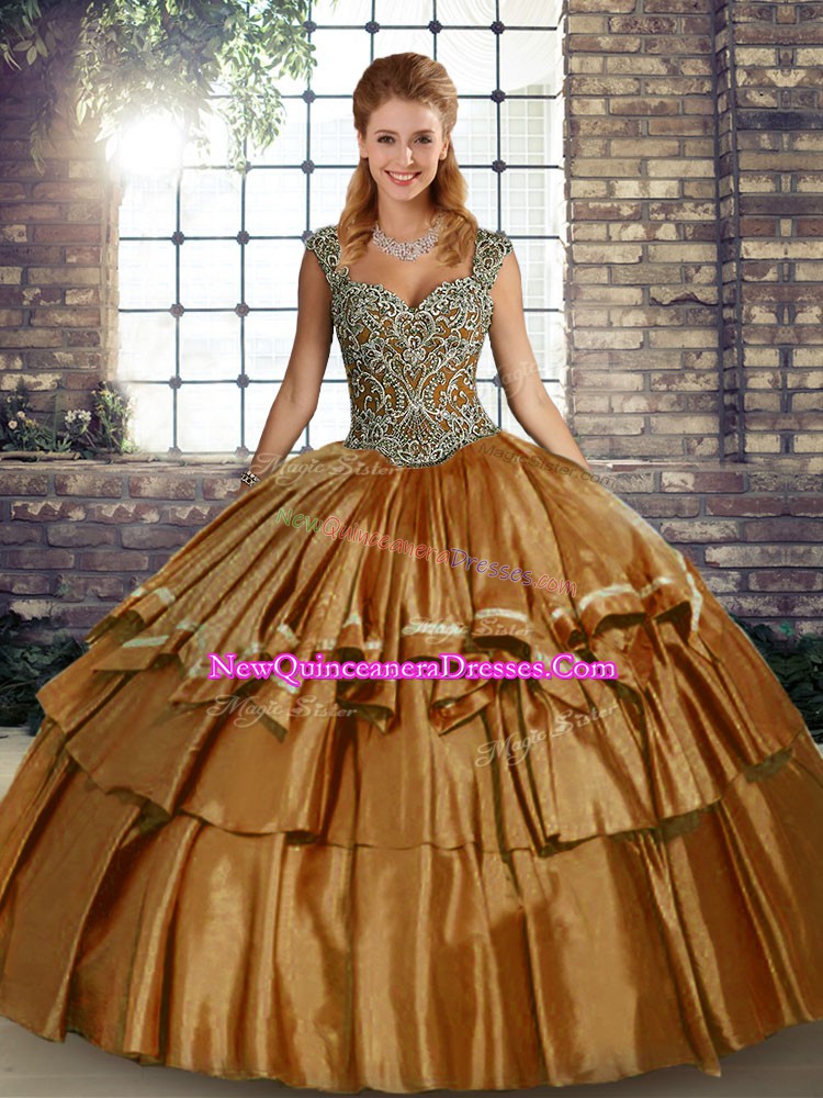 Clearance Brown Lace Up Straps Beading and Ruffled Layers Vestidos de Quinceanera Taffeta Sleeveless