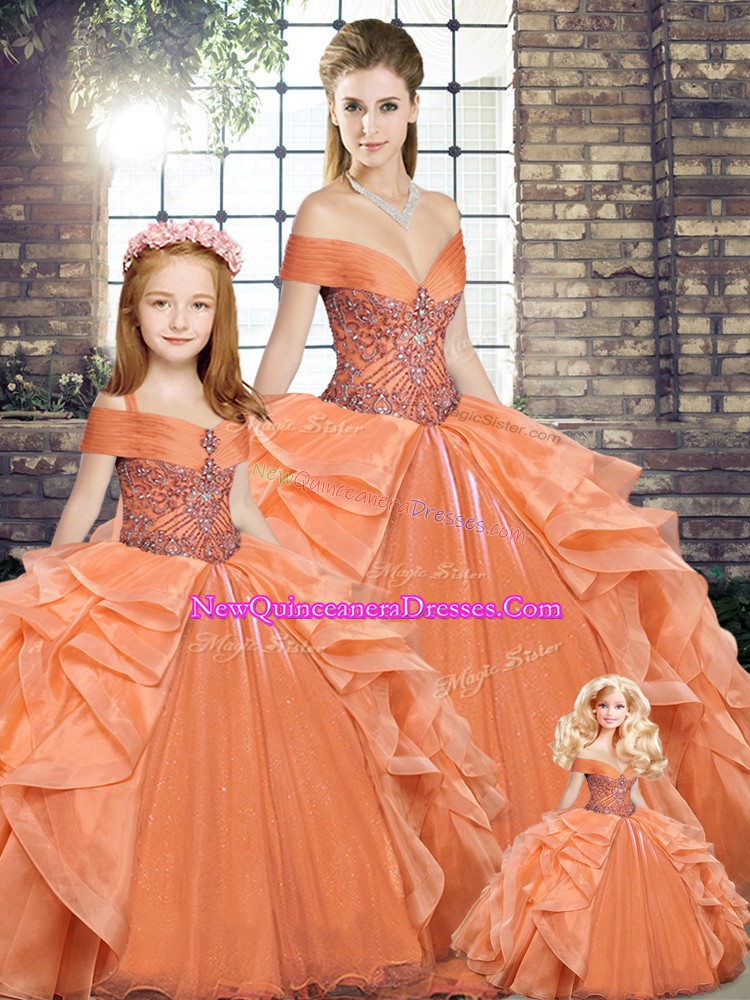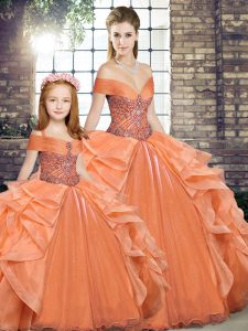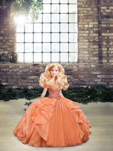 Clearance Orange Sleeveless Organza Lace Up Quinceanera Gowns for Military Ball and Sweet 16 and Quinceanera