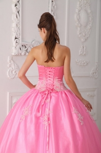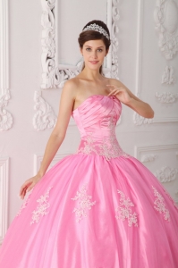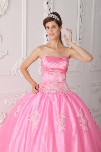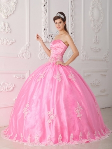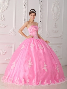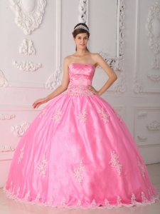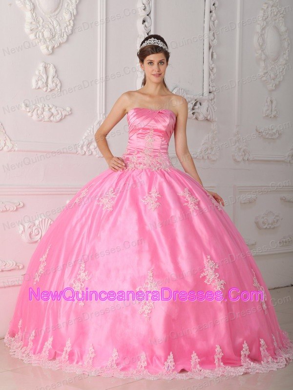 chic quinceanera gowns with appliques, Pretty Pink Quinceanera Dress Strapless Lace Appliques Ball Gown