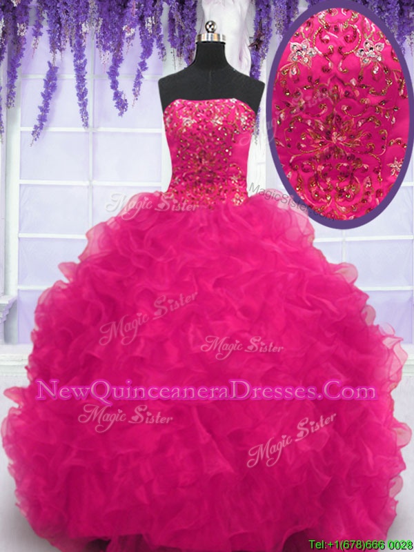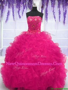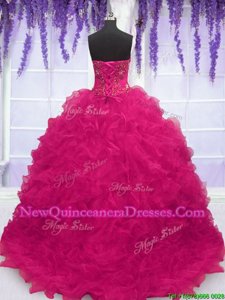 Colorful Spring and Summer and Fall and Winter Organza Sleeveless With Train Quinceanera Gown Brush Train andBeading and Ruffles