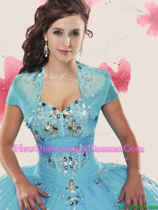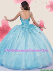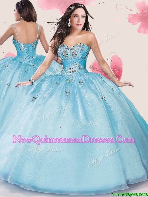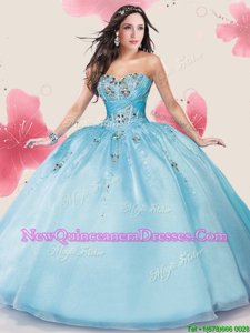 Colorful Sweetheart Sleeveless Lace Up 15th Birthday Dress Baby Blue Organza