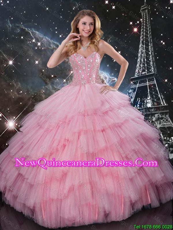 2018 pink sweet sixteen quinceanera dresses with ruffled layers,