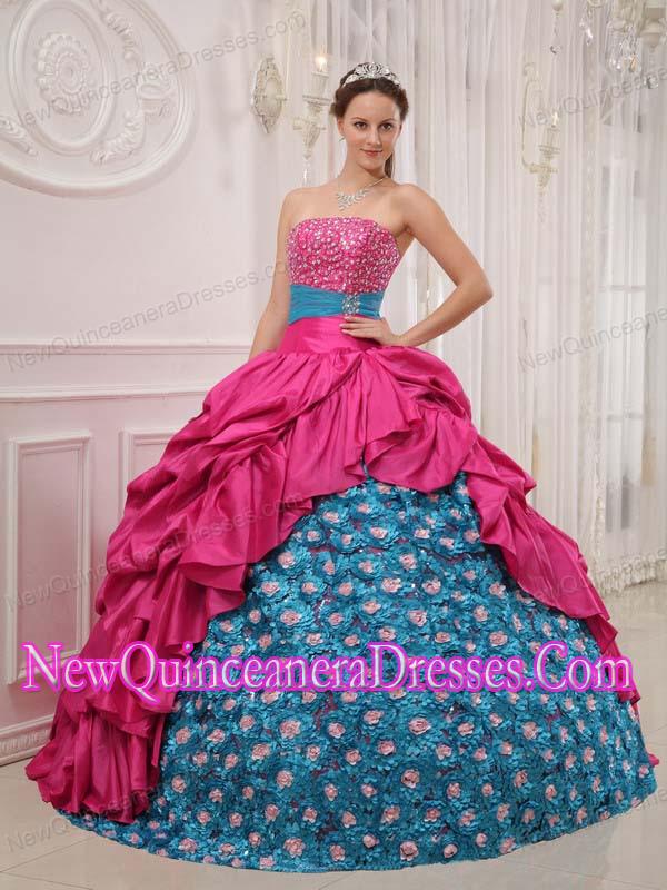 Coral Red and Blue Ball Gown Strapless Elegant Quinceanera Dress with Beading