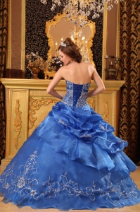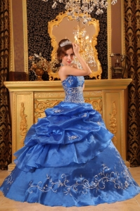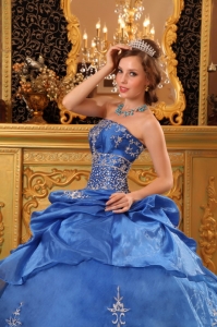 Elegant Blue Quinceanera Dress Strapless Organza Beading Ball Gown