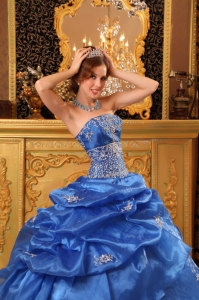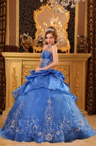 Modest Blue Quinceanera Dress Sweetheart Taffeta Appliques and Pick-ups Ball Gown