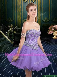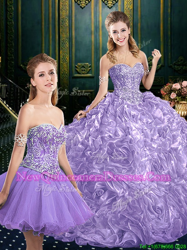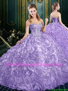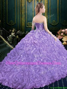 Custom Design Lace Up Sweet 16 Dress Lavender and In for Military Ball and Sweet 16 and Quinceanera withBeading and Ruffles Court Train