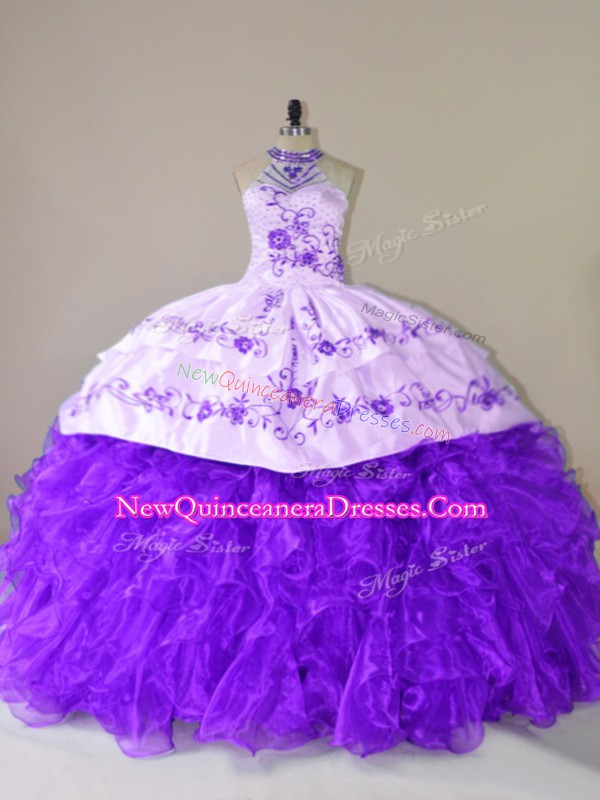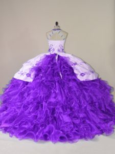 Custom Design Purple Lace Up Vestidos de Quinceanera Embroidery and Ruffles Sleeveless Court Train