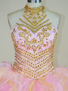 Custom Fit Floor Length Multi-color Quinceanera Dresses Organza Sleeveless Beading and Ruffles