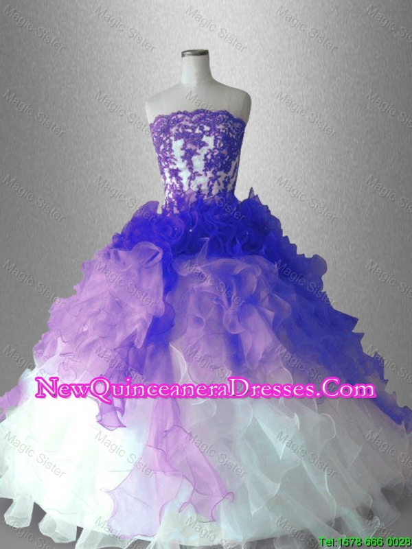 Custom Made Appliques and Ruffles Quinceanera Gowns with Strapless