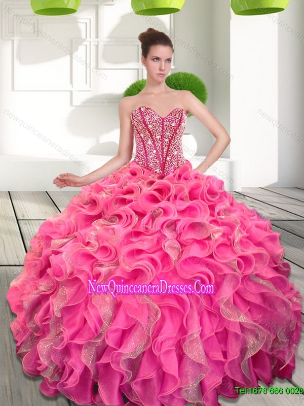 Custom Made Beading and Ruffles Sweetheart Quinceanera Dresses for 2015