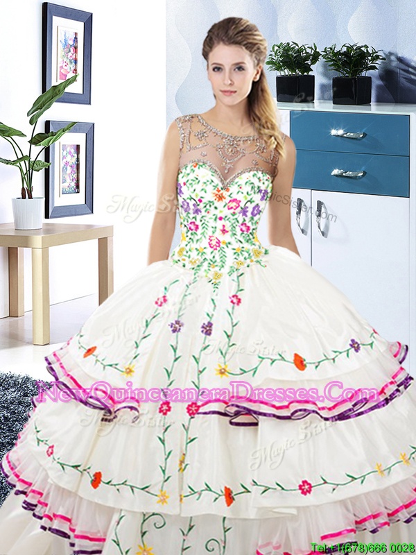Custom Made Ruffled Scoop Sleeveless Lace Up Sweet 16 Dresses White Organza and Taffeta