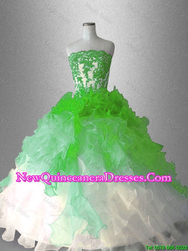Custom Made Strapless Sweet 16 Dresses with Appliques and Ruffles