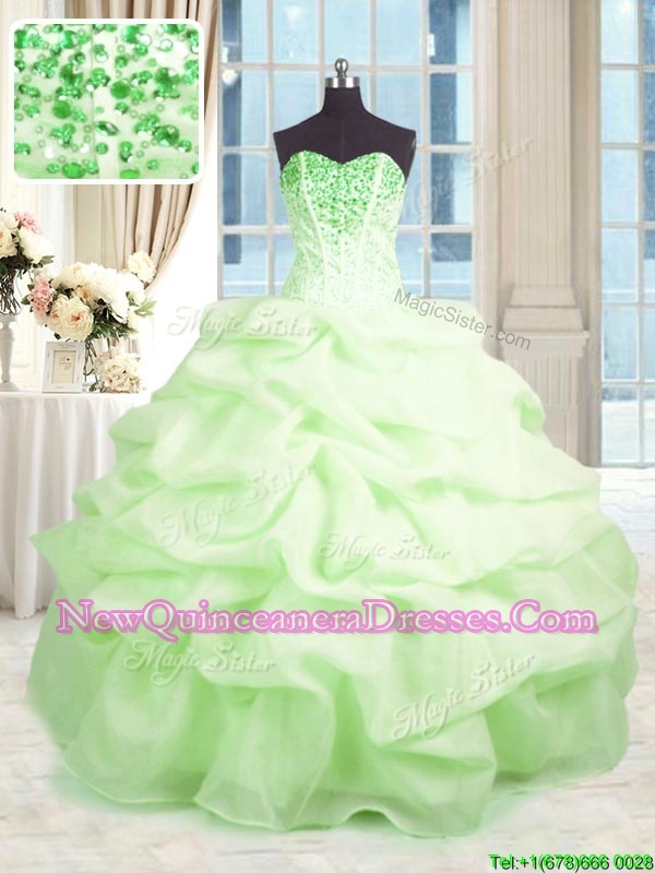Custom Made Sweetheart Sleeveless Lace Up 15 Quinceanera Dress Spring Green Organza