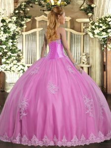 Customized Floor Length Rose Pink Sweet 16 Dress Sweetheart Sleeveless Lace Up