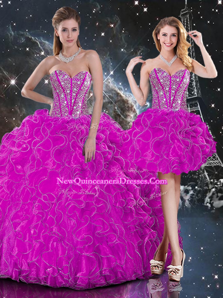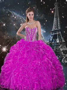 Customized Fuchsia Sweetheart Lace Up Beading and Ruffles Ball Gown Prom Dress Sleeveless