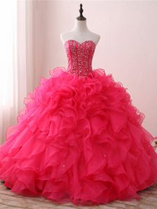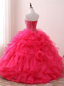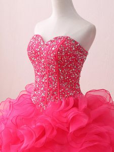 Customized Hot Pink Sleeveless Beading and Ruffles Floor Length Quinceanera Dress