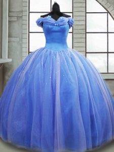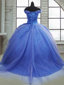 Luxurious Light Blue Sweet 16 Quinceanera Dress Tulle Brush Train Sleeveless Pick Ups